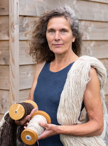 In mijn ambachtelijke weverij in Alkmaar weef ik stoffen met hand gesponnen wol. Spinnen van draden doe ik dagelijks. Daarnaast is beeldend werken ook een textiele kunstvorm die voor mij bijzonder inspirerend is bij het ontwerpen van stoffen. Daarbij gebruik, of onderzoek ik diverse weeftechnieken. Het onderzoek naar de mogelijkheden van het weven en ‘buiten de lijntjes kleuren’ is een persoonlijke uitdaging.