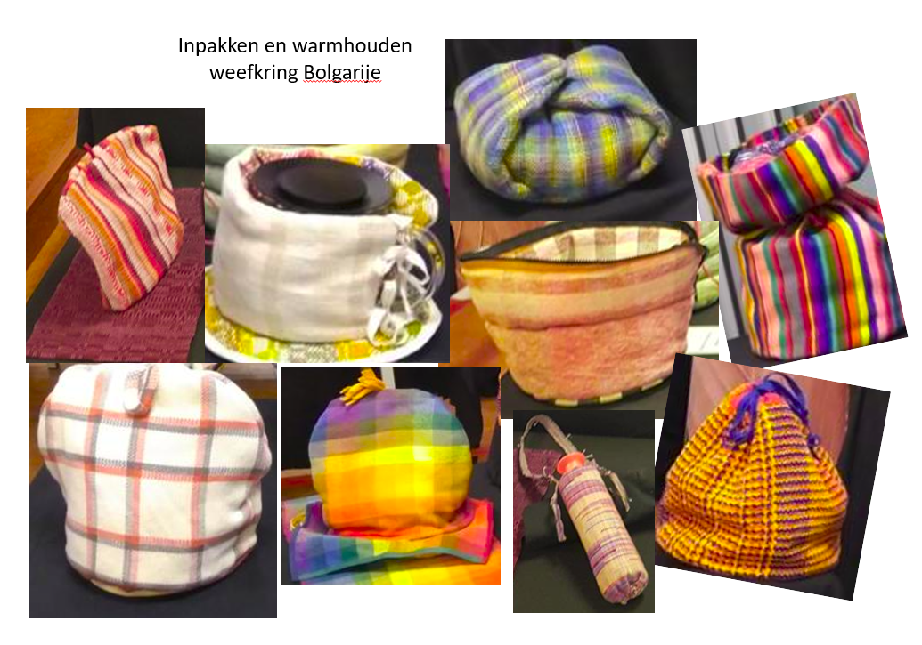 We doen regelmatig mee aan de ledententoonstellingen van WEEFNETWERK, zoals aan de Kakelbonte tentoonstelling van 2023, waar wij het thema “Inpakken en warmhouden (of koud)” aan toegevoegd hebben.